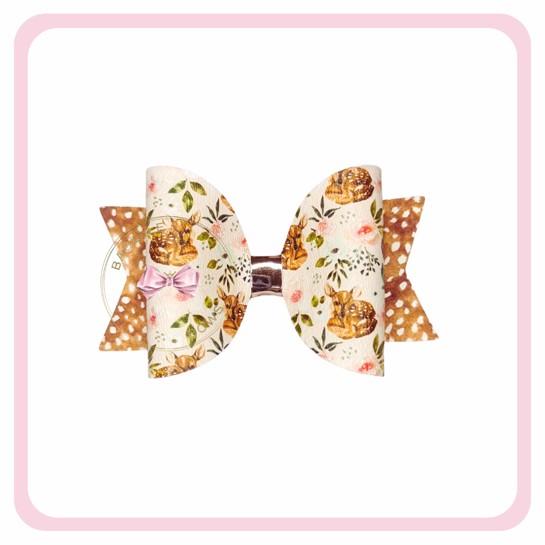 Fawn of your dreams! This handmade hair bow, featuring a dainty brown freckled print, gives off an undeniably sweet vibe. Plus, it's fastened to a stainless steel alligator clip, so you can rest assured it'll stay put all day long. So what are you waiting for? Let your inner fawn out!