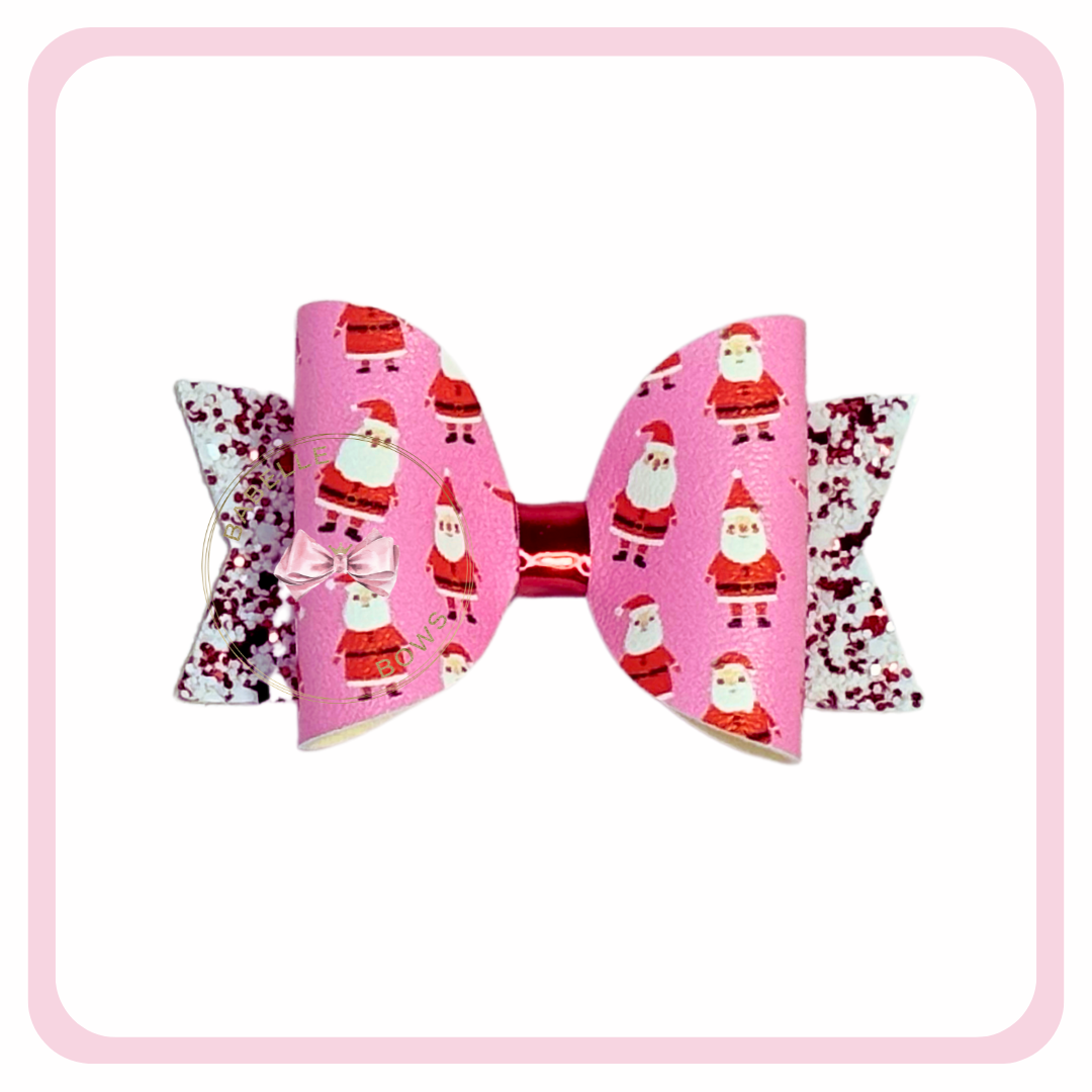 Feel the holiday spirit with this Mini Santa—the perfect, holly-jolly accessory for Christmas lovers everywhere! Each handmade piece features a festive mini Santa artisan leatherette print and glitter in a unique combination of pink and red. Ho-ho-pair it with your favorite holiday outfit—it'll be a holiday hit!